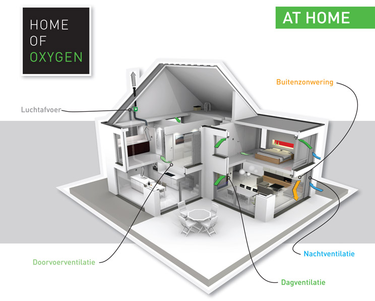 Het is dus van uiterste noodzaak om de lucht binnenin gebouwen op regelmatige wijze te verversen. Een juiste en goede ventilatie is noodzakelijk. Want in passiefhuizen bijvoorbeeld, die volledig luchtdicht gebouwd worden, kan de lucht niet goed circuleren, blijft de vervuilde lucht hangen, ontstaat er geurhinder, vochtcondensatie op de ramen en in de muren en worden bacteriën gemakkelijk verspreid.Ventileer niet omdat het verplicht is, maar omdat het nodig is voor een gezonde woning en een gezond gezin.