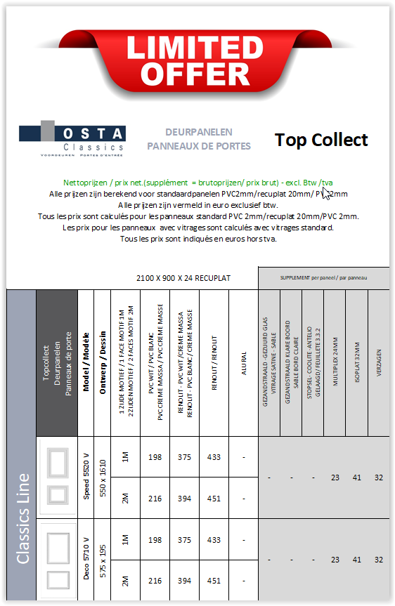 Osta Classics is gestart in 1999 met zijn eigen produktie van PVC en Aluminium deurpanelen voor de schrijnwerker.