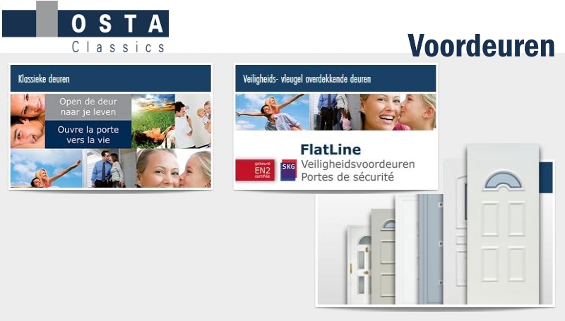 Eind jaren ’90 bracht Osta classics zijn eigen collectie Pvc en aluminium voordeurpanelen op de markt. De catalogus is ondertussen uitgebreid naar meer dan 90 pagina’s.
