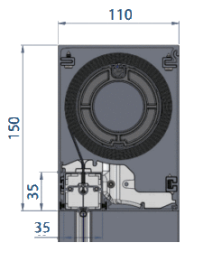De inbouwscreen bestaat uit een screen kast van 110 * 150 mm (b*h). De kast is ontworpen met een 90° afronding. De aluminium kast en zijgeleiders zijn beschikbaar in alle RAL-kleuren.