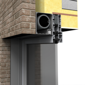 De kast is thermisch isolerend (1,3 W: m2K), geluidswerend (54 (0;-3) dB) en gemaakt uit zeer stevig geëxtrudeerd aluminium. - Deels verborgen plaatsing in de muur